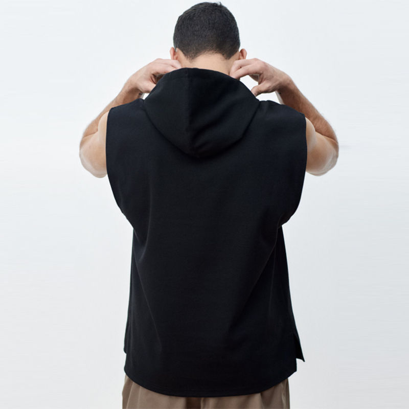 Débardeur de sport d'été en coton respirant sans manches à capuche pour hommes, taille personnalisée, débardeur écologique avec broderie 3D et absorbant la sueur