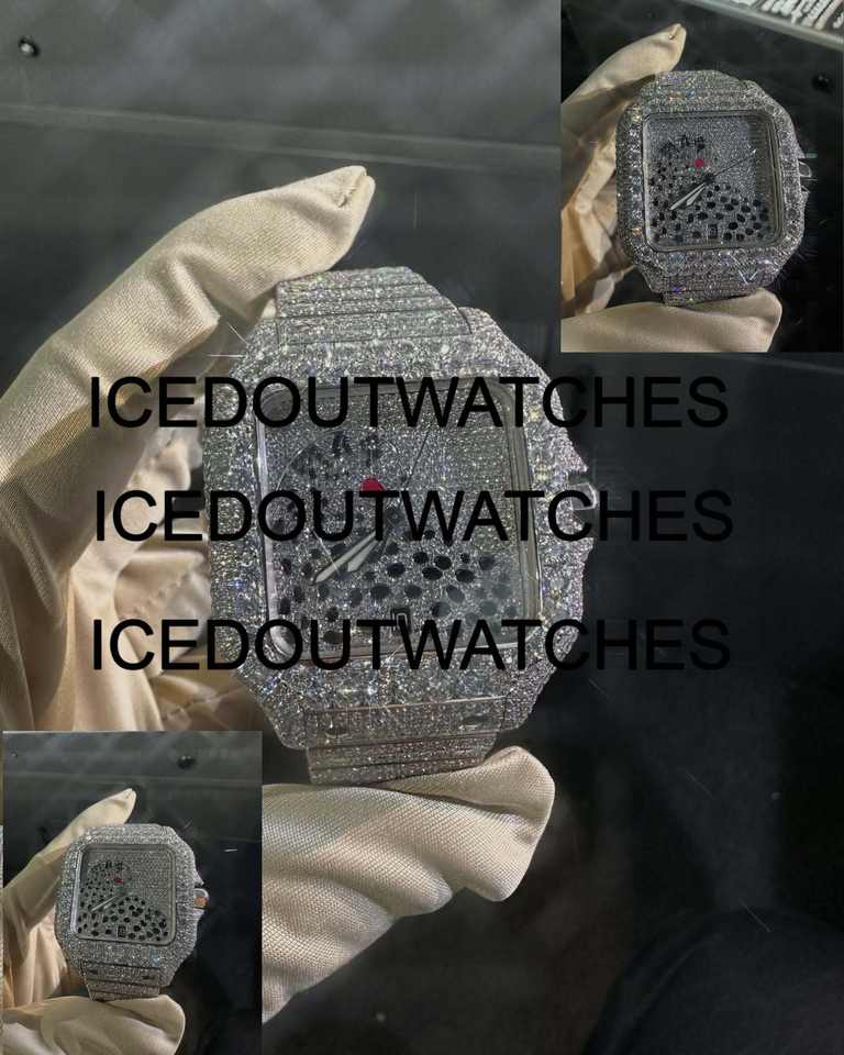 Montre-bracelet pour homme avec boîtier carré personnalisé en acier inoxydable et bracelet en moissanite, mouvement à quartz, cadran en verre, résistance à l'eau 10 bars