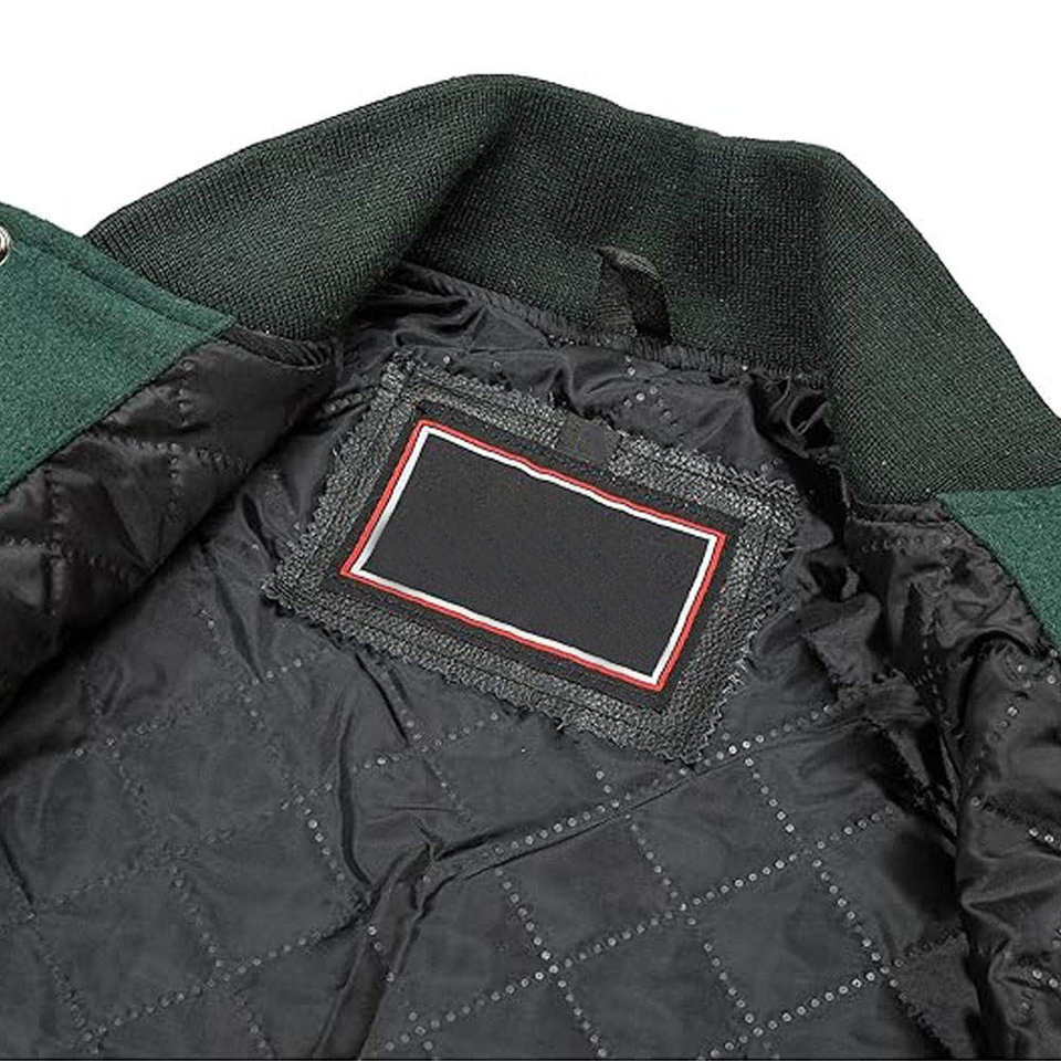 Blouson universitaire d'hiver personnalisé pour homme en laine/cuir, col montant, style Letterman, avec logo frontal, vierge et uni, vente en gros