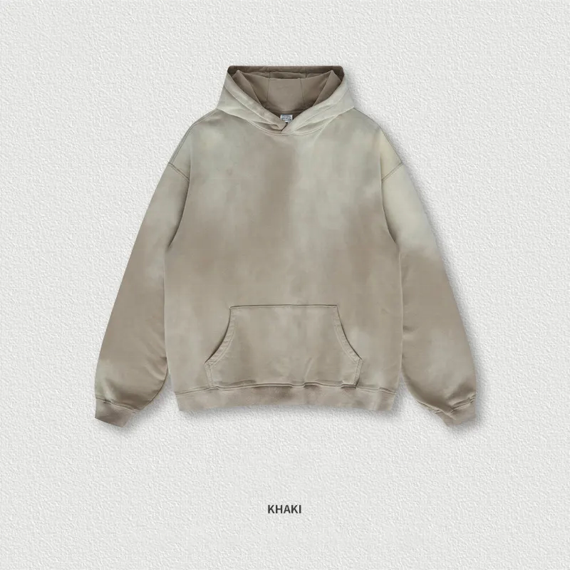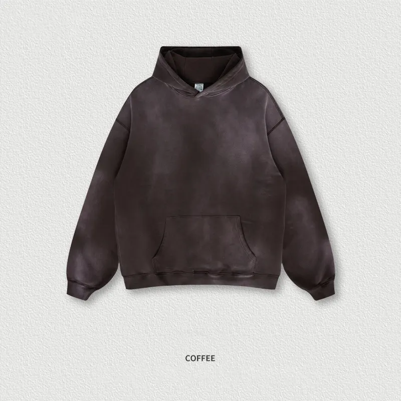Pull à capuche pour hommes de haute qualité, délavé à l'acide, à motif solide, sweat-shirt d'hiver en coton polyester imprimé personnalisé