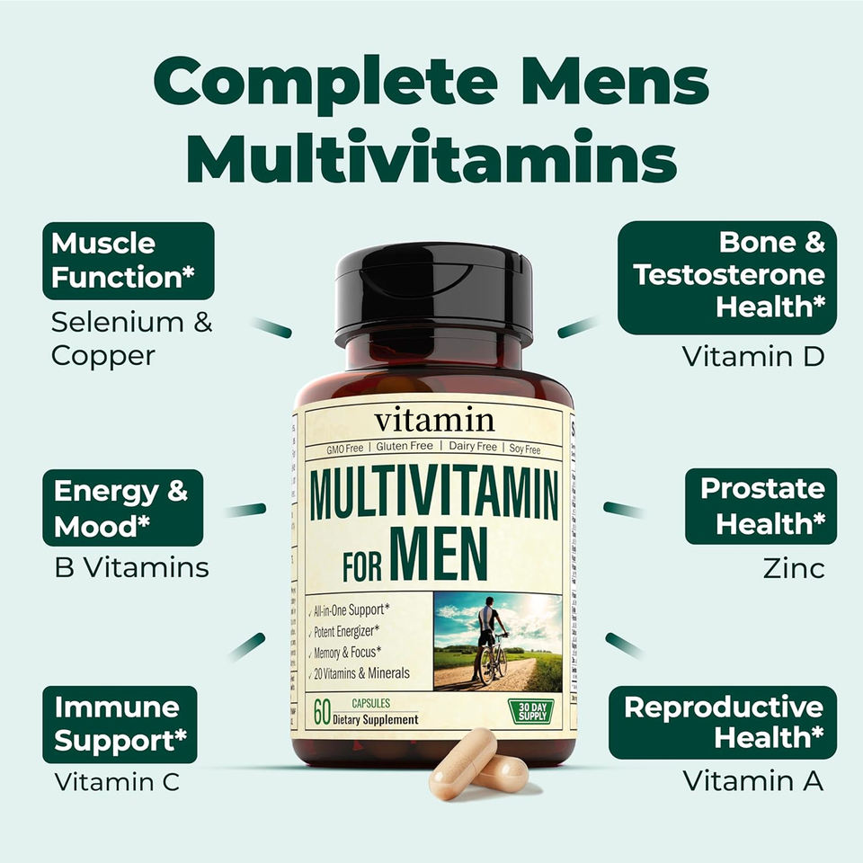 Capsules quotidiennes de multivitamines pour hommes avec soutien immunitaire et propriétés antioxydantes à partir d'extraits de plantes (spiruline)