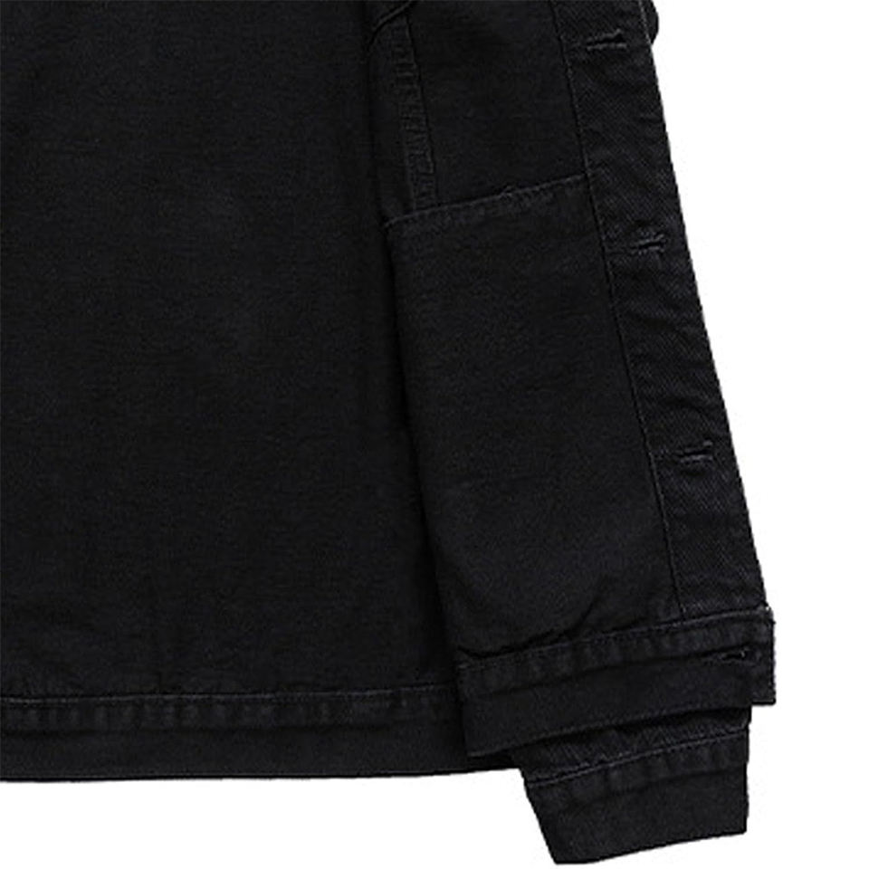 Veste en jean pour homme, couleur noire, hiver, chaude, surdimensionnée, coupe ample, fermeture à boutons, logo sur le devant, chauffante, respirante, coupe-vent