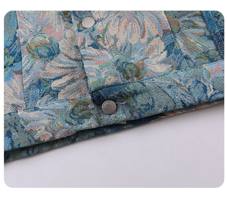 Veste en jean pour homme, logo personnalisé, haute qualité, jacquard, imprimé floral, veste unisexe, streetwear, veste décontractée