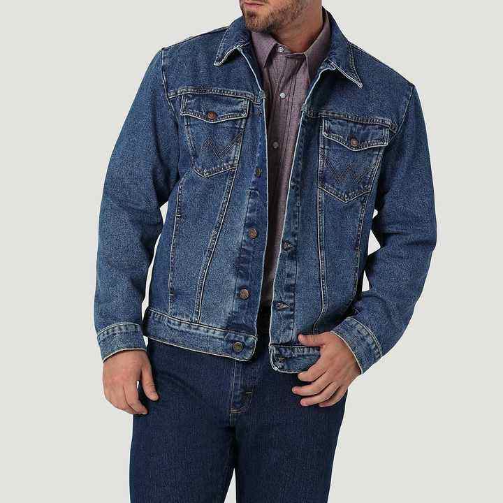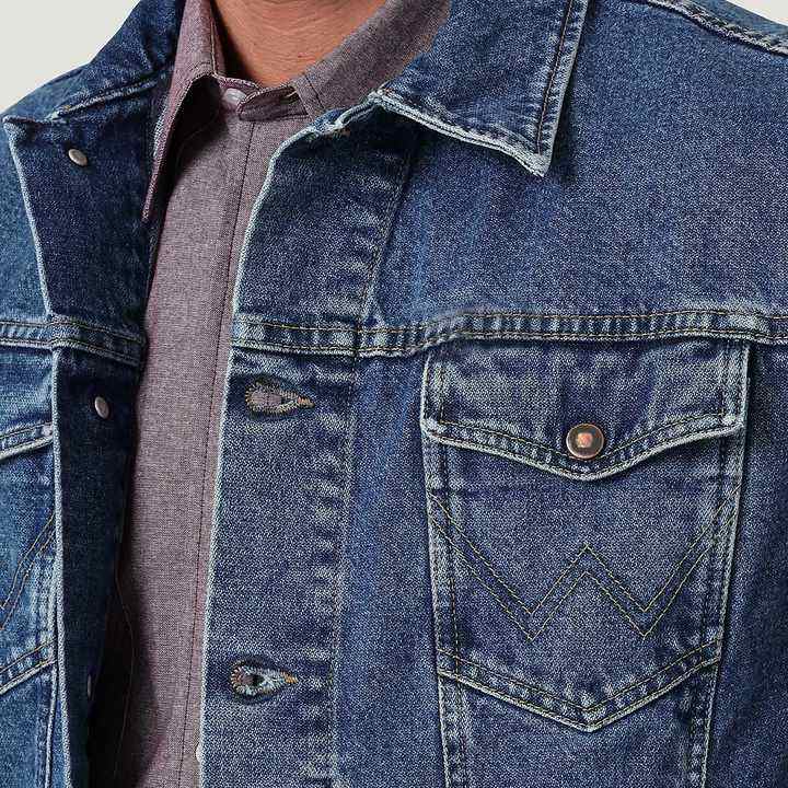 Veste en jean pour homme, coupe moderne, délavage moyen, coupe droite, tissu en denim mélangé, fermeture boutonnée, col à revers, durable
