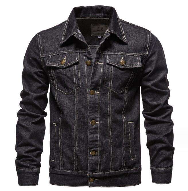 Men's Denim Jacket Casual Outwear Fall Slim Fit Stand Collar Zipper Closure Front Logo Vintage Style