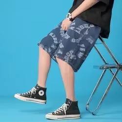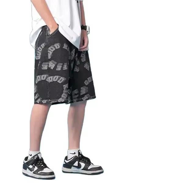 Shorts en jean pour hommes, été, broderie tendance, taille mi-haute élastique, coupe confortable, décontracté, respirant, séchage rapide, 100% coton