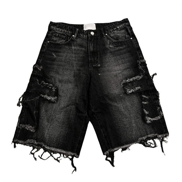 Men's Denim Shorts Summer Streetwear Straight Custom Sorts Baggy Distressed Dark Washed Cotton Men's Shorts