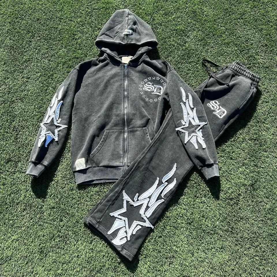 Ensemble de survêtement cardigan à 3 fils imprimé Good Vibes pour femme