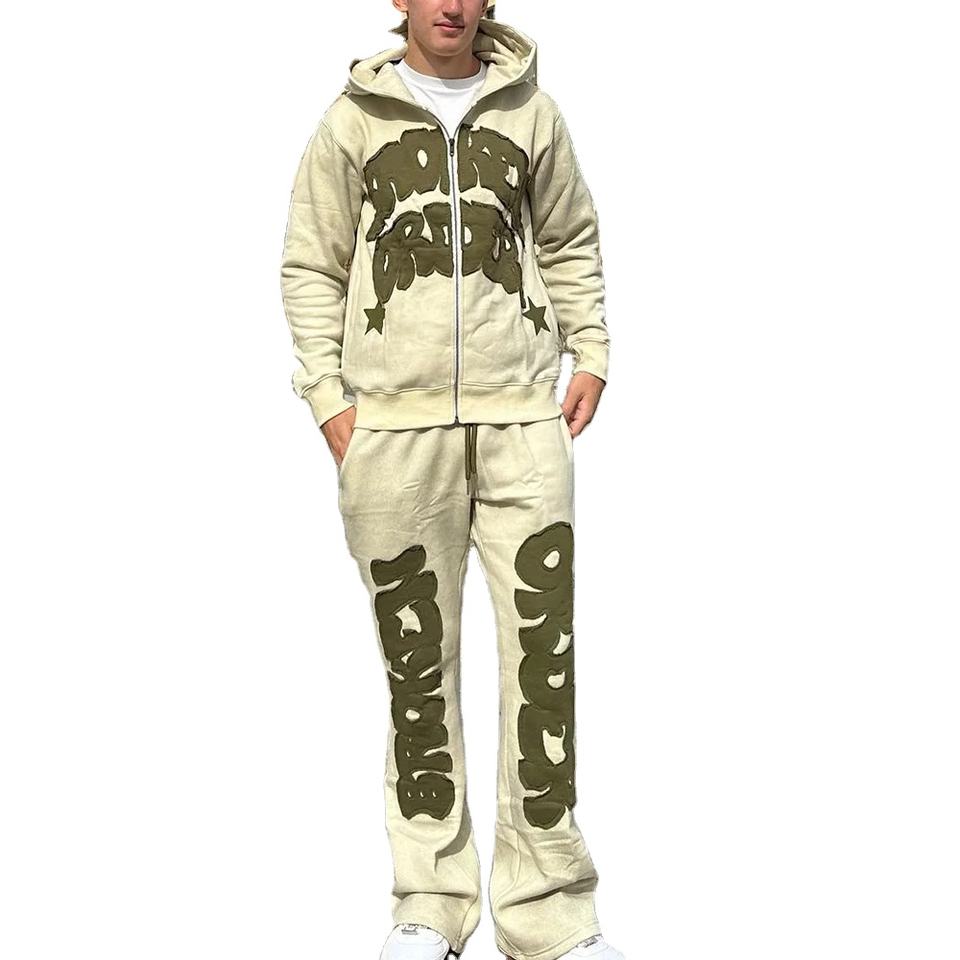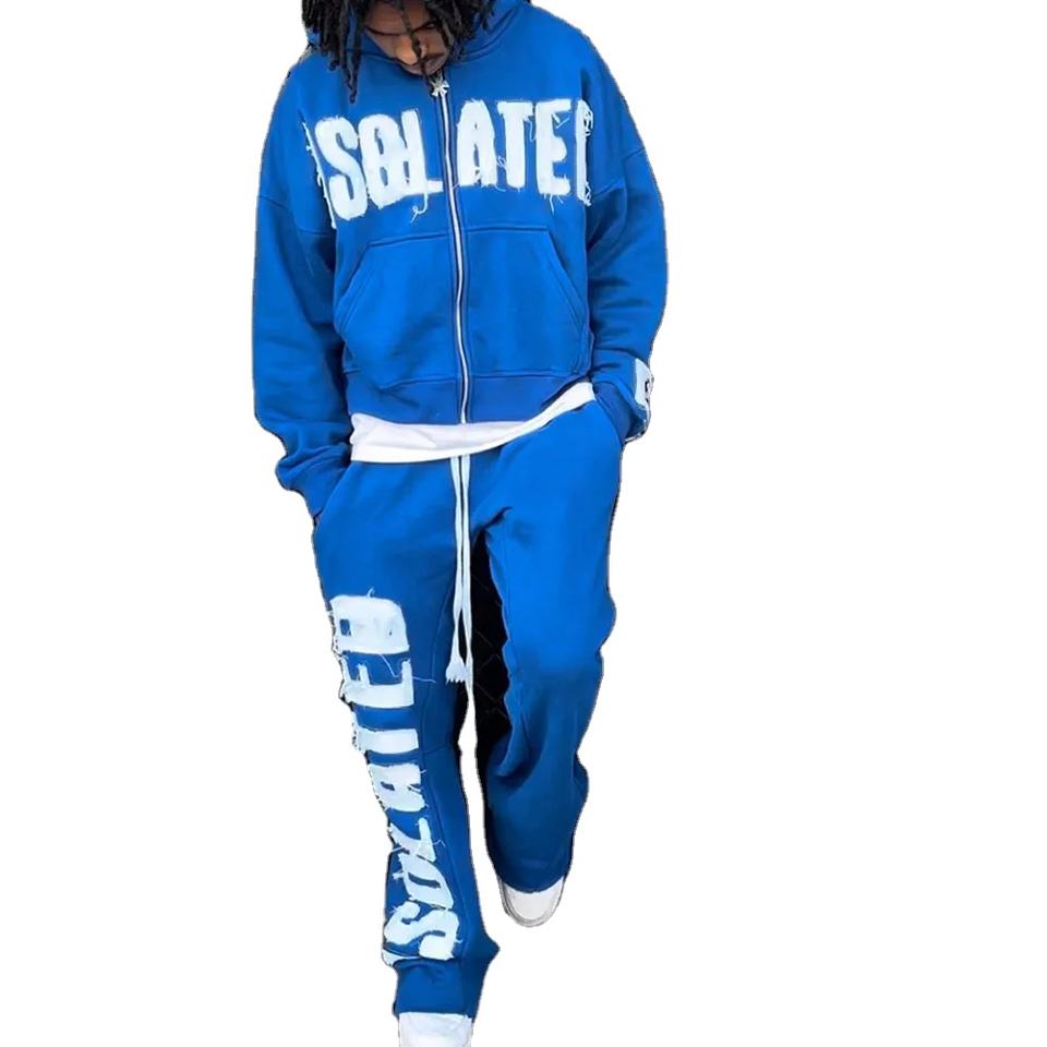 Survêtements d'hiver à capuche pour hommes, logo personnalisé, brodés, lavés à l'acide, imprimés évasés et empilés, 100% coton