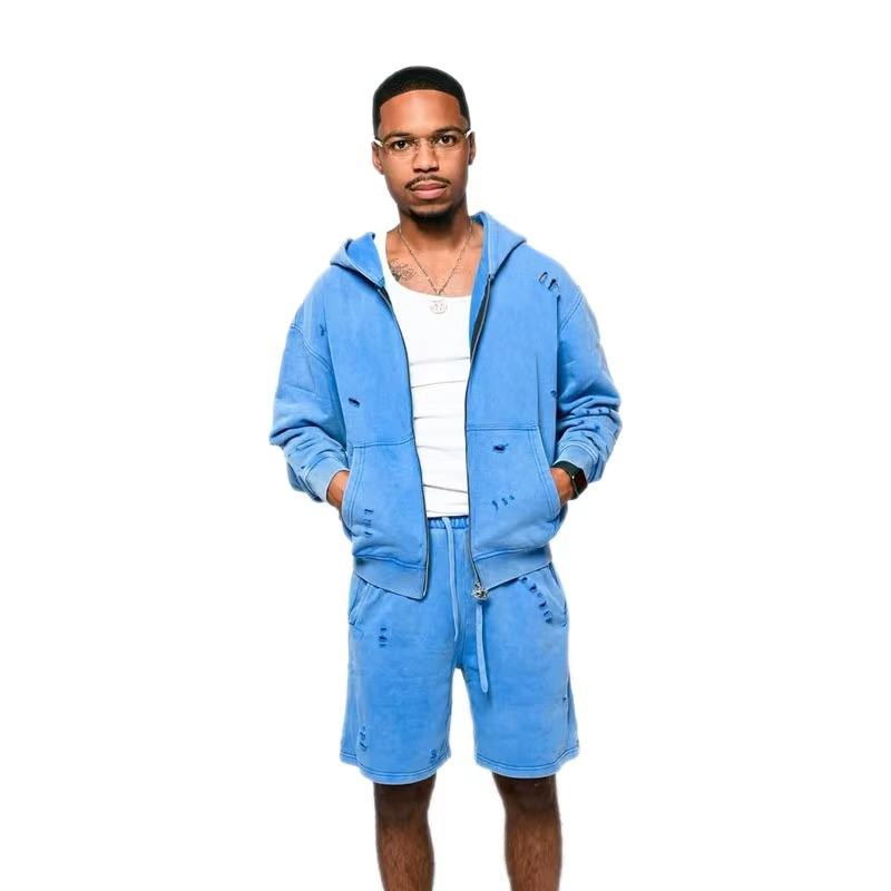 Ensemble streetwear décontracté pour homme, sweat à capuche zippé et short long jusqu'aux genoux, 2 pièces, style oversize, tenue décontractée hip-hop
