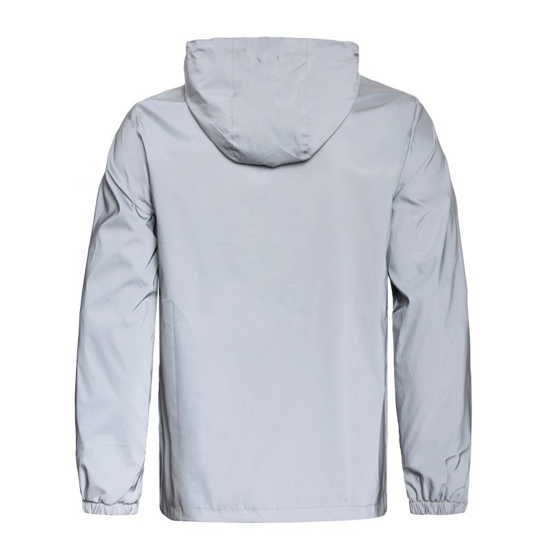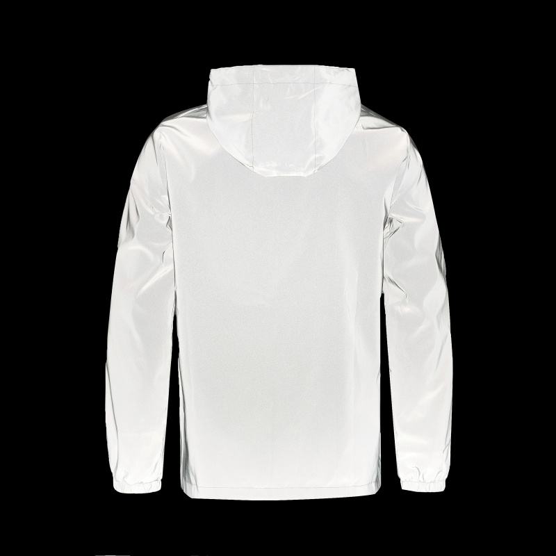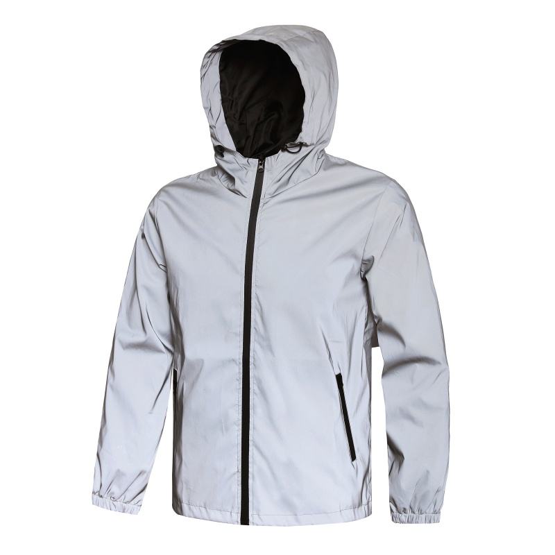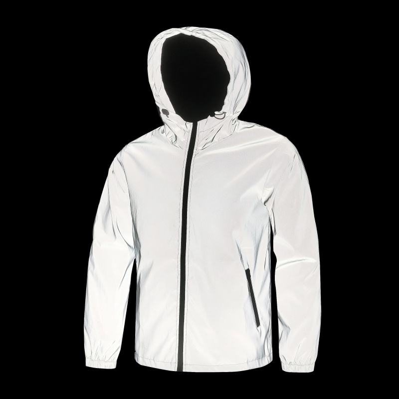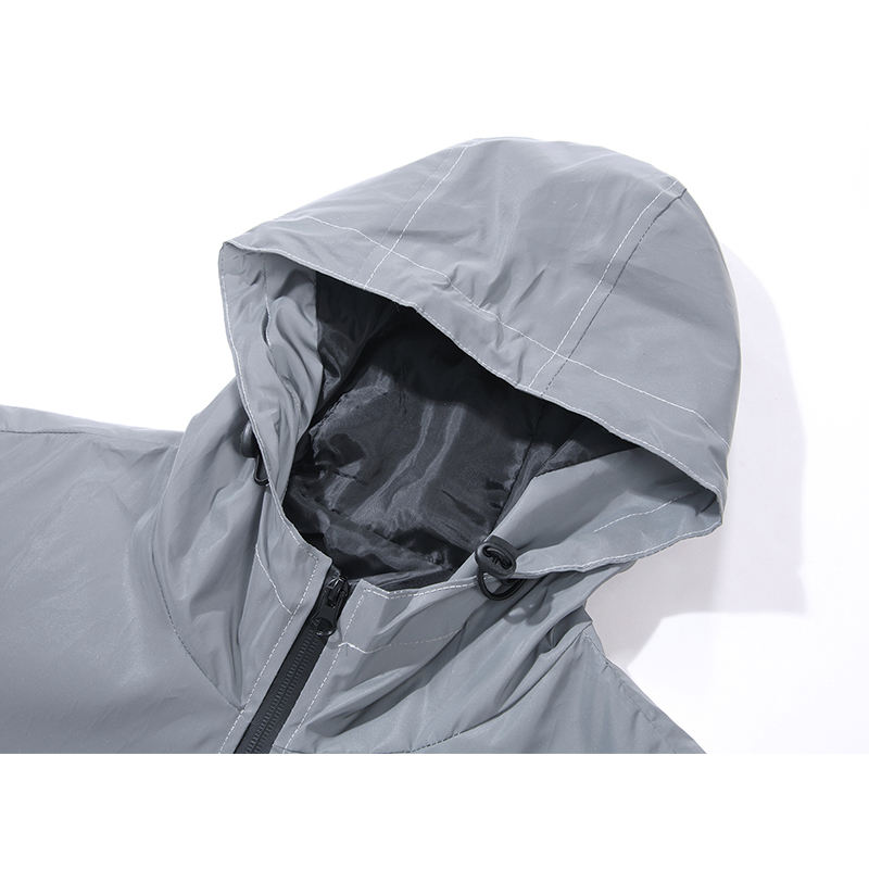 Veste de nuit réfléchissante double tissu pour hommes coupe-vent imperméable à glissière Hip Hop Dancer Singer Style Dyed Outwear Manteau à capuche