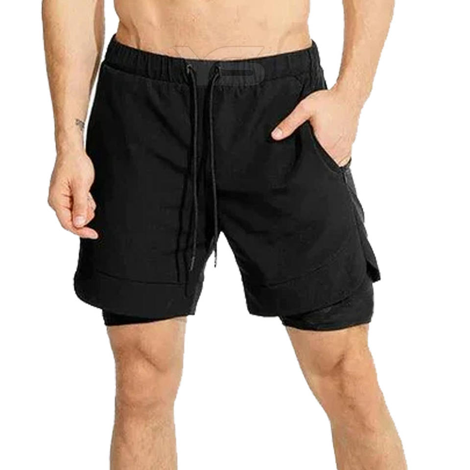 Men's Double Layer High Street Beach Shorts Wholesale Price Plain Dyed Polyester Solid Hot Shorts Drawstring Waist Mid Waist