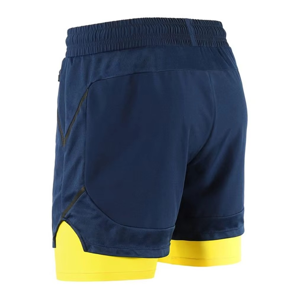 Shorts de sport respirants pour hommes, double couche, en polyester et élasthanne, avec logo personnalisé - Vêtements de plage, fitness athlétique