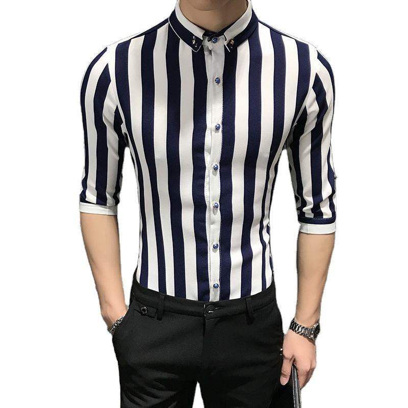Chemises habillées pour hommes Chemise décontractée à boucle et revers Chemise club à manches longues à imprimé écossais pour hommes