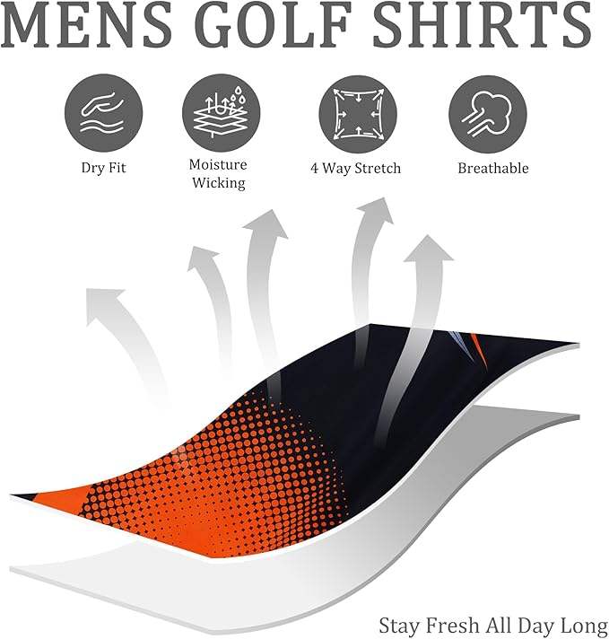 Polo de golf pour homme, coupe sèche, évacuation de l'humidité, 100% polyester, tricoté, imprimé, manches courtes