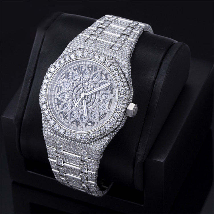 Nom du produit:Montre de luxe unisexe fabuleuse en Moissanite de style romain glacé