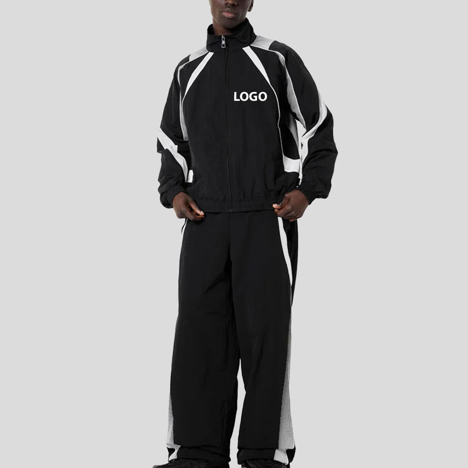 Survêtement en coton pour homme, coupe-vent imprimé écologique, logo personnalisé, séchage rapide, surpiqûres contrastées, uni, à capuche, grande taille, deux pièces