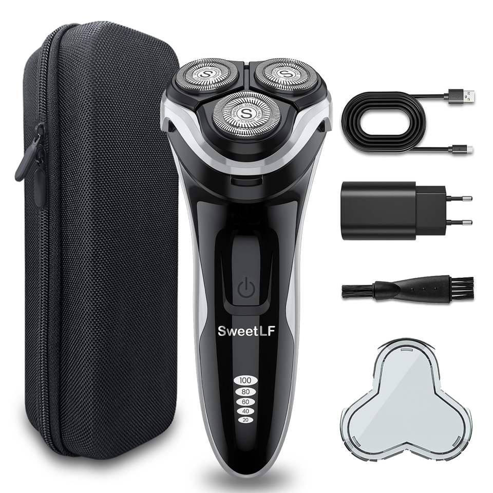 Rasoir électrique pour homme avec écran LED, tête flottante 4D, batterie rechargeable USB, étanche IPX7, rasoir rotatif, étui de voyage