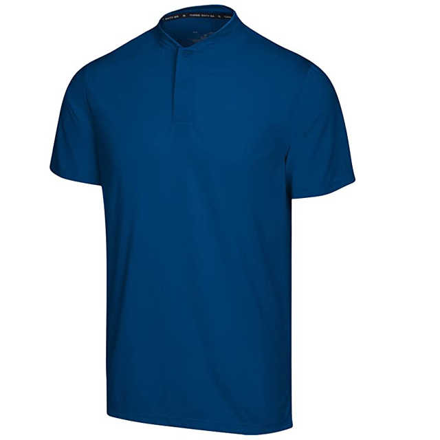 Chemise de golf pour homme brodée, style streetwear, séchage rapide, motif uni, sans col, manches courtes, décontractée, anti-plis, extensible