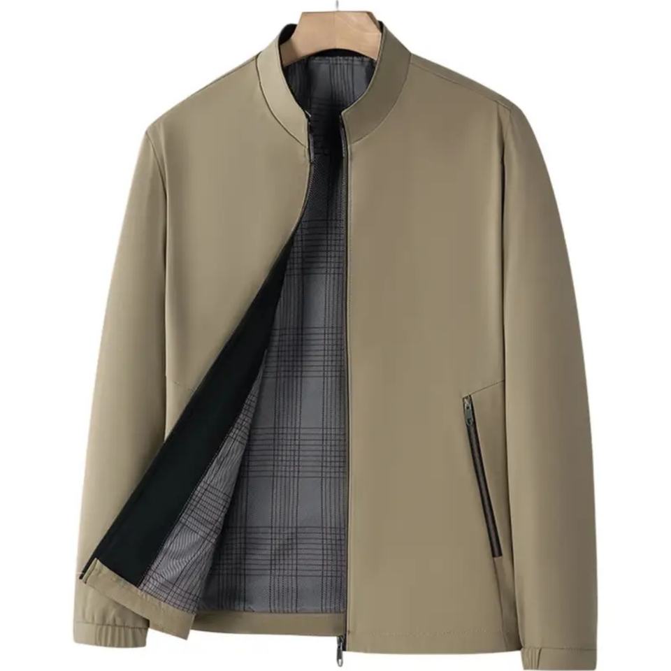 Veste coupe-vent à col montant brodée pour homme avec fermeture éclair, veste décontractée d'affaires pour le printemps et l'automne, pour les personnes d'âge moyen et les personnes âgées