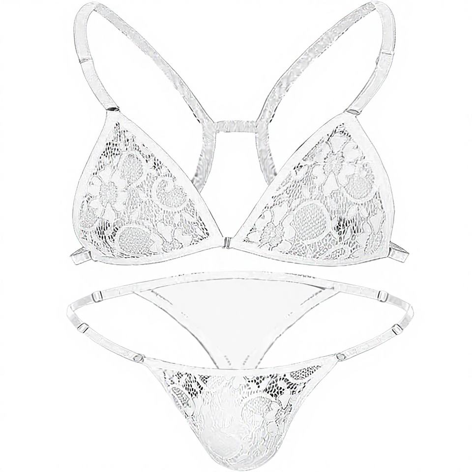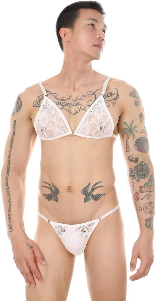 Ensemble de lingerie érotique pour homme, culotte sissy, bustier gay, bikini sexy en dentelle, taille basse, col halter, triangle classique, dos nu