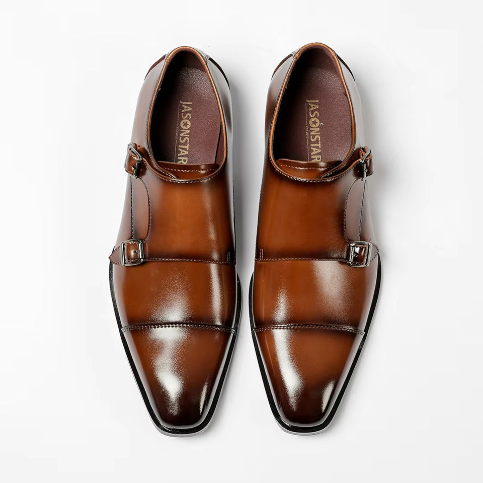 Chaussures classiques à boucles en cuir véritable Tan Analin à lacets 1033230140