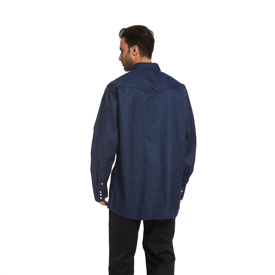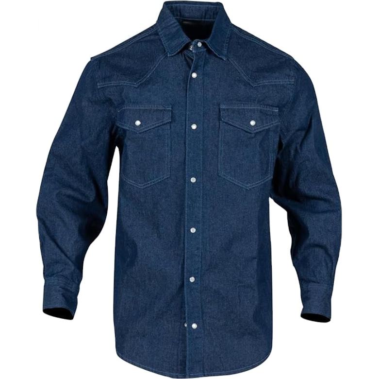 Chemise de Travail Classique en Jean FR pour Hommes, Coton de Poids Moyen Ignifuge, Protection pour le Soudage