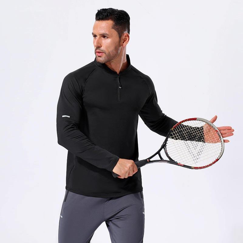 Hauts actifs automne hiver pour hommes col montant demi-fermeture éclair T-Shirt séchage rapide respirant à manches longues sport haut de fitness