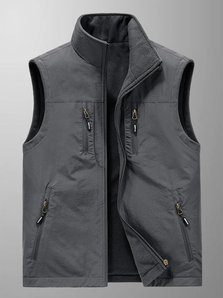 Veste de travail d'automne et d'hiver pour homme, gilet multi-poches épaissi rembourré, maillot de corps en toile à col montant pour les activités de plein air