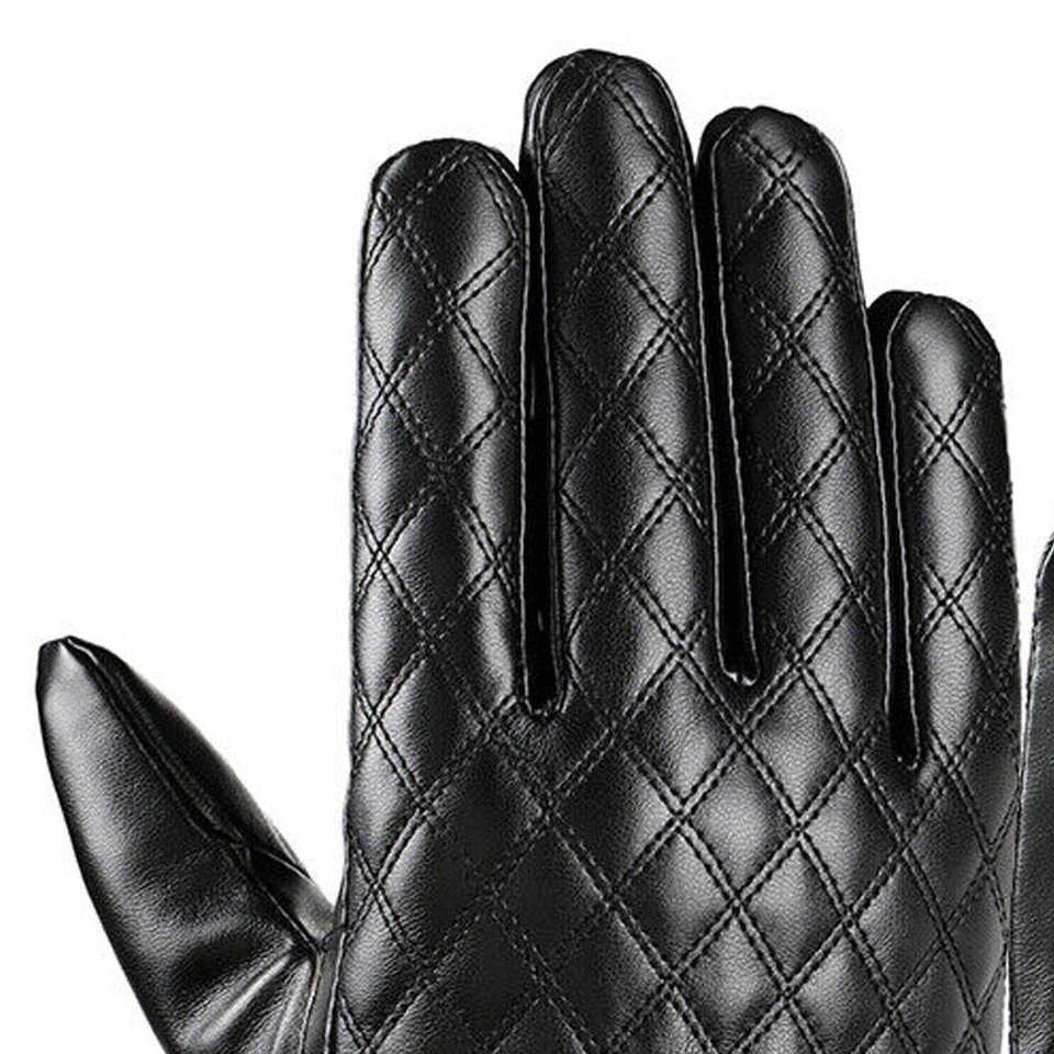 Men's Fashion Black Faux Leather Gloves Winter Warm Waterproof Touch Screen Driving Feature for Outdoor Use