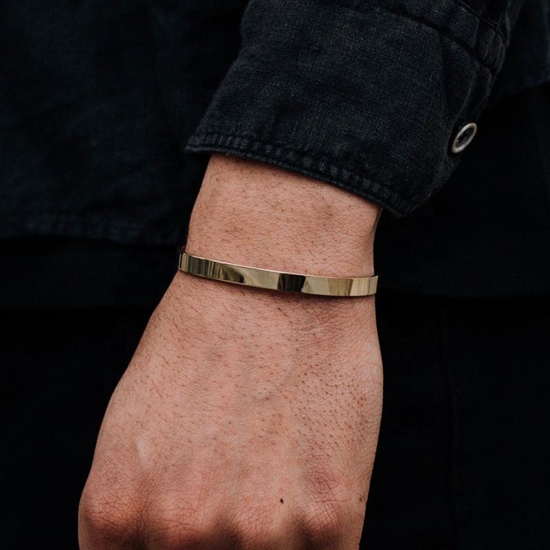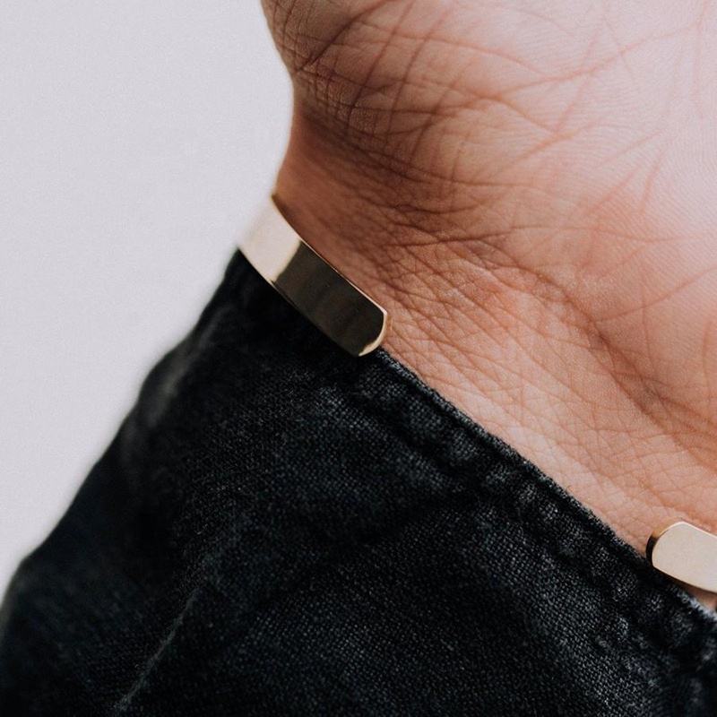 Bracelet jonc ouvert en forme de C pour homme, en acier inoxydable plaqué or, réglable, sans inscription, pour anniversaire