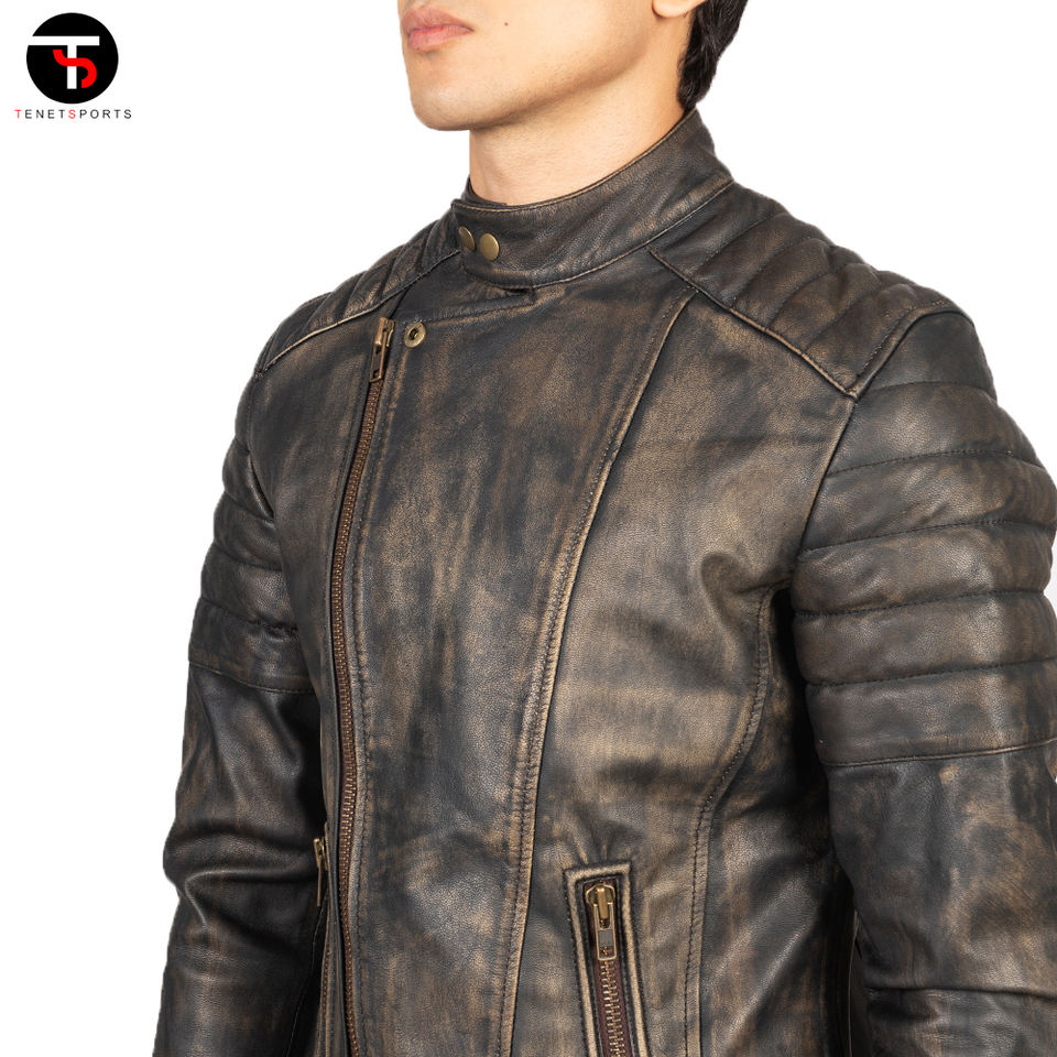 Veste de mode élégante et moderne pour hommes, col montant imprimé sur mesure avec traitement enduit, cuir original pour jeunes garçons
