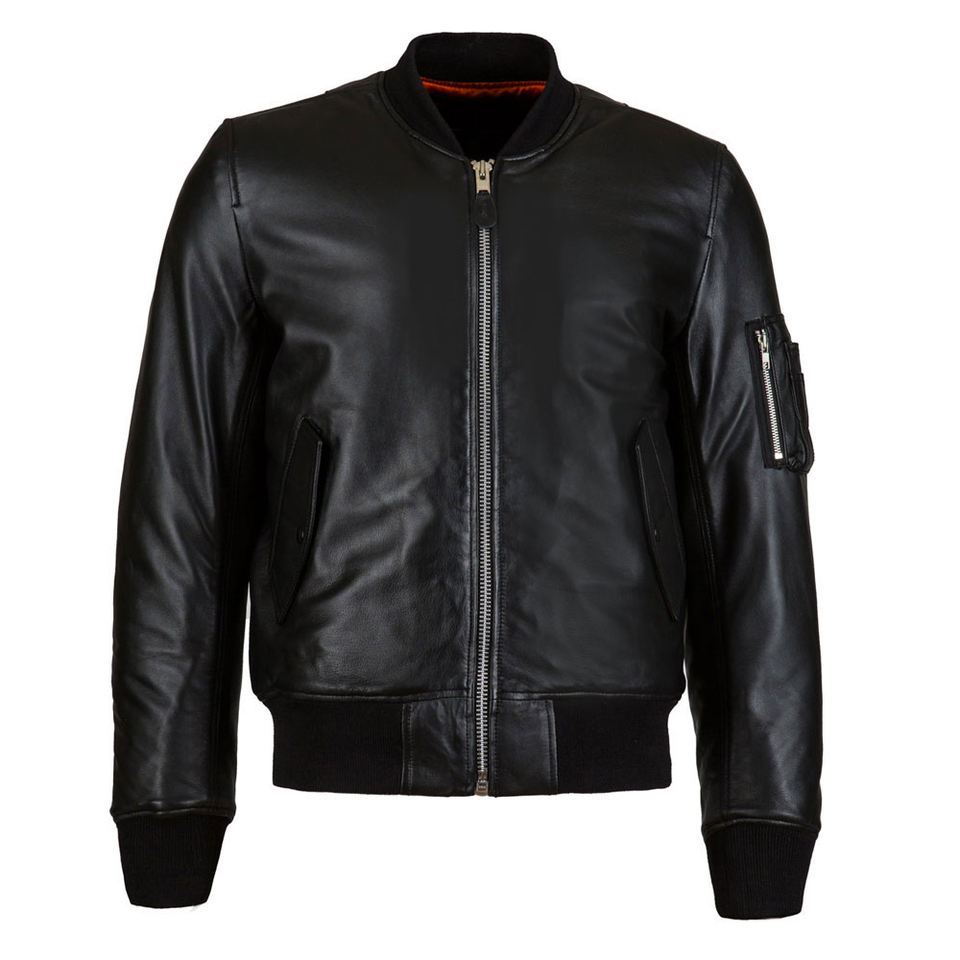 Veste en cuir à texture tendance pour hommes avec logo à l'avant Prix de gros pour les jeunes Jean Manteaux Veste de pilote Bomber Flight Fighter