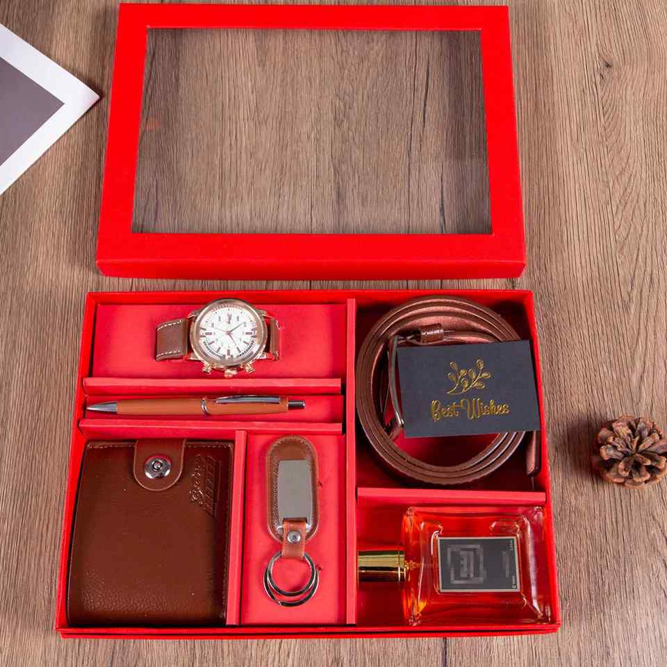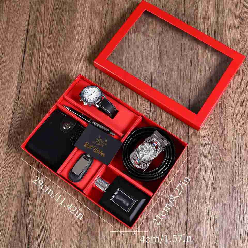 Ensemble de montre, portefeuille, porte-clés et parfum pour homme, cadeau de fête des pères, cadeau de la Saint-Valentin, cadeau d'anniversaire, coffret cadeau de luxe pour homme