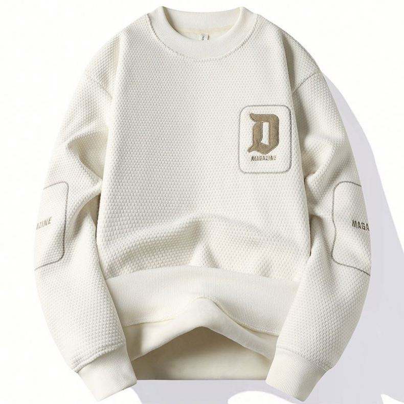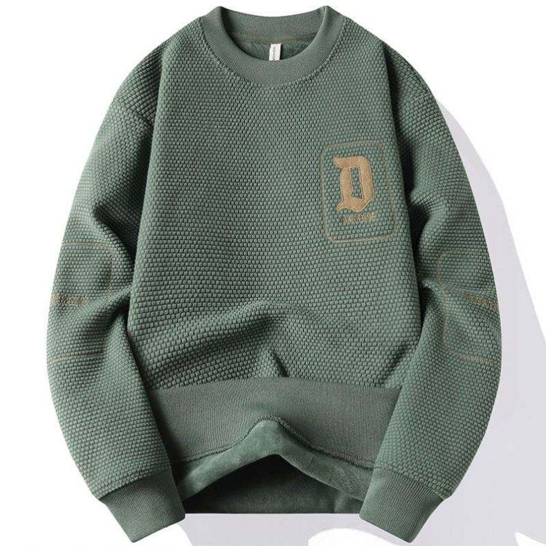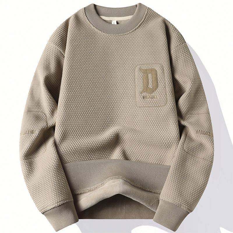 Chandail une pièce à la mode en velours brodé doublé polaire tricoté anti-boulochage pour hommes, base chaude pour l'hiver, col épaissi, devant