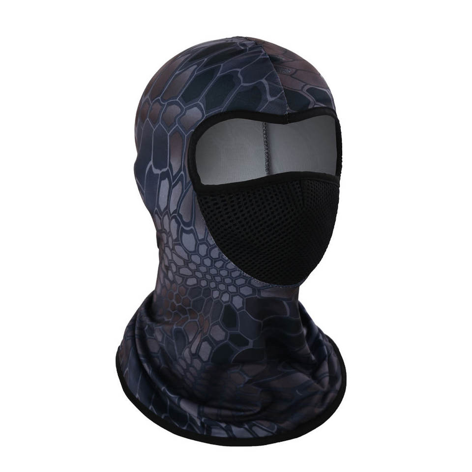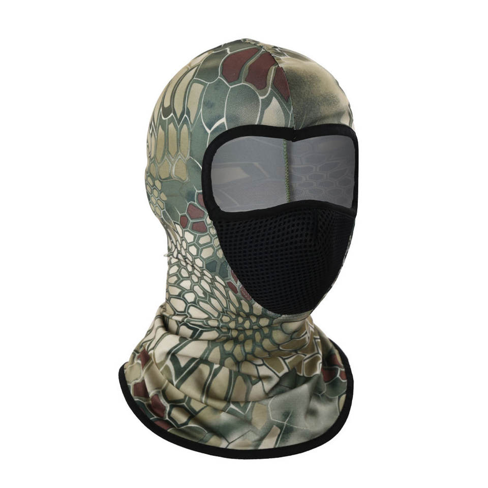Men's Full Coverage Breathable Mesh Balaclava Python Camouflage Motorcycle Riding Face Mask Adjustable Headgear Summer