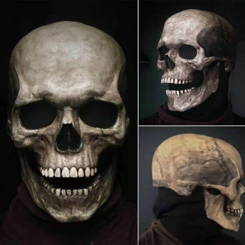 Masque en latex réaliste de squelette complet pour homme, mâchoire mobile, casque effrayant pour Halloween, masque facial pour les fêtes