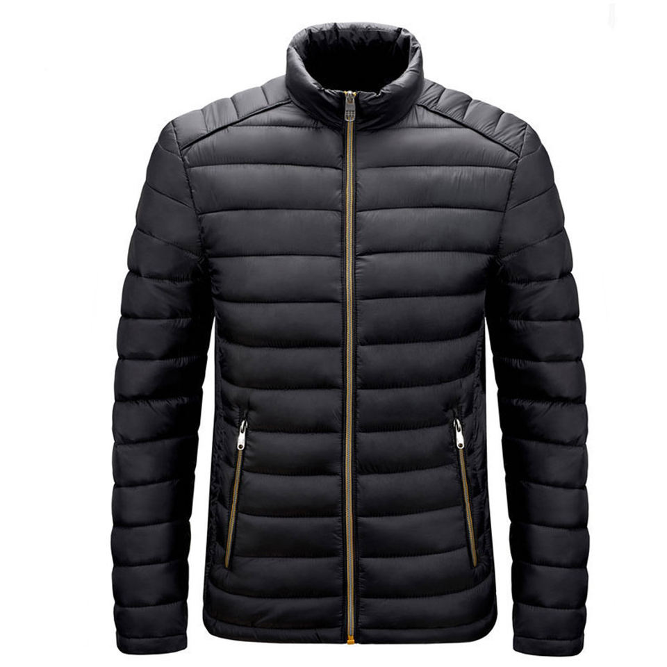 Men's Full Sleeve Winter Puffer Jacket Breathable Customizable Logo Design Stand Collar with Zipper Closure Quality Adult Wear