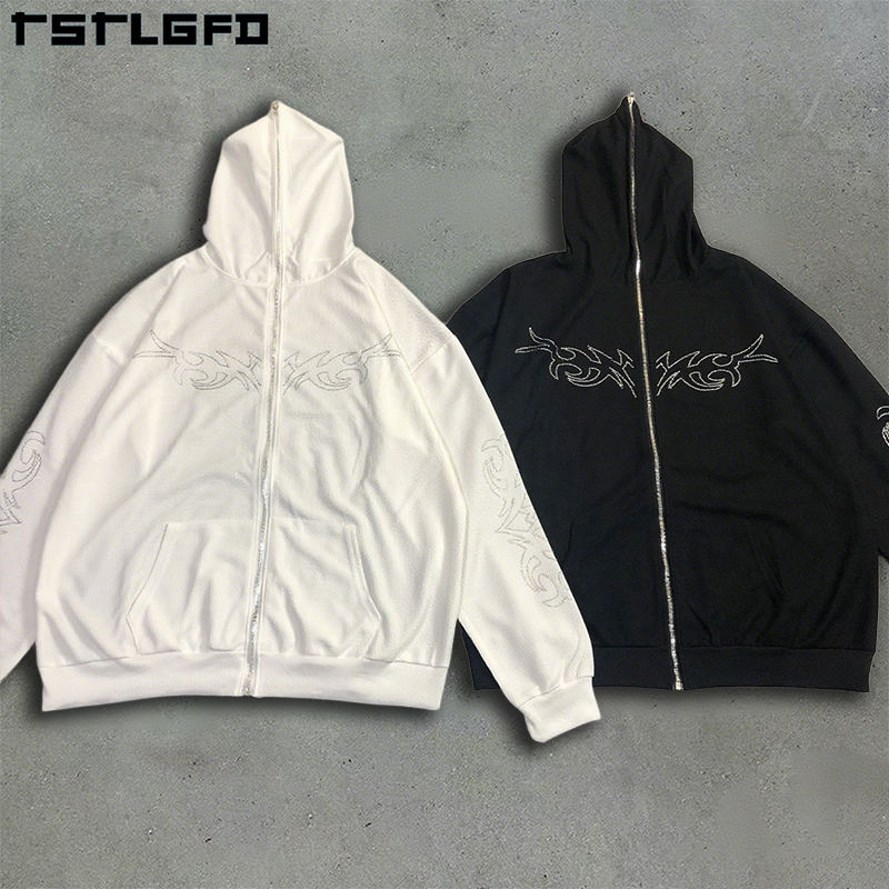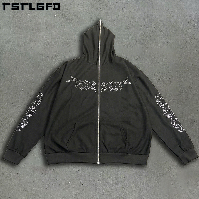 Sweat à capuche pour hommes avec strass personnalisé automne Digital Street Wear 100% French Terry 100% sweat à capuche surdimensionné en coton biologique