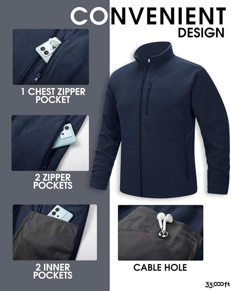 Veste polaire à fermeture éclair pour hommes, vestes polaires à manches longues légères, chaudes et douces avec poches pour la randonnée hivernale décontractée