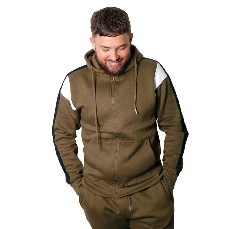 Survêtement en molleton à fermeture éclair intégrale pour homme avec bras contrastés et rayures sur les joggeurs Ensemble de survêtement athlétique à capuche Active Wear Ensembles de survêtement