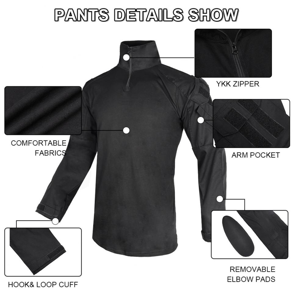Emballage inclus:1x ensemble chemise tactique + pantalon + genouillères et coudières