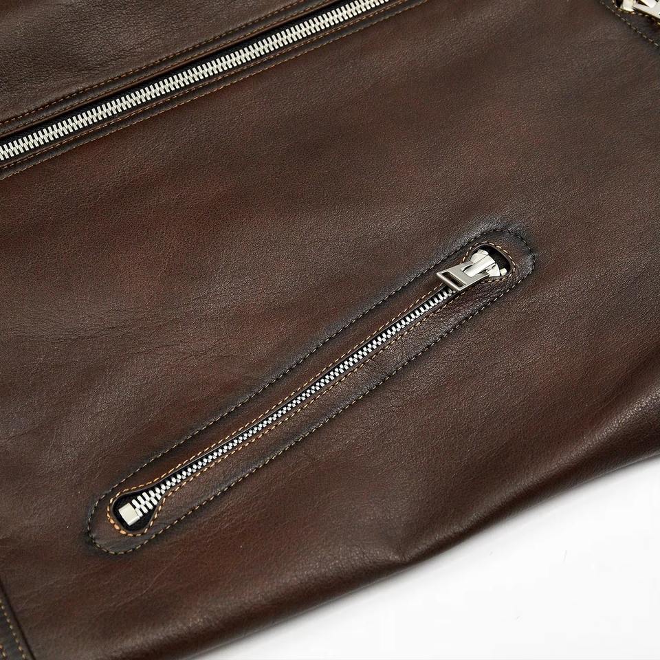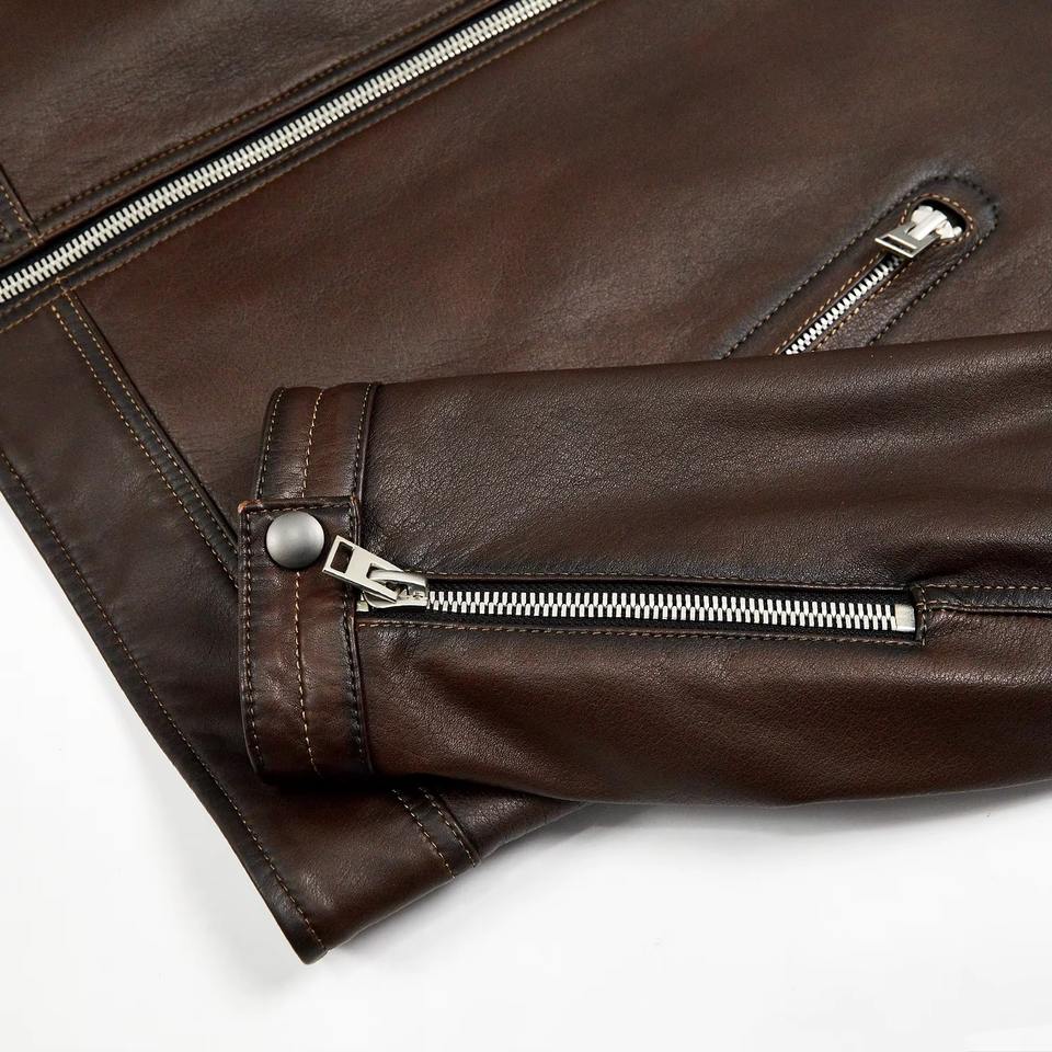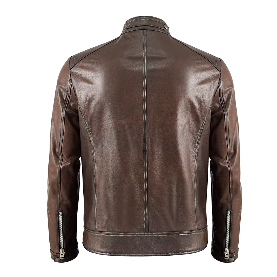 Veste pour homme en cuir de vache véritable Manteau simple et décontracté en marron pour le printemps et l'automne Veste en cuir de haute qualité