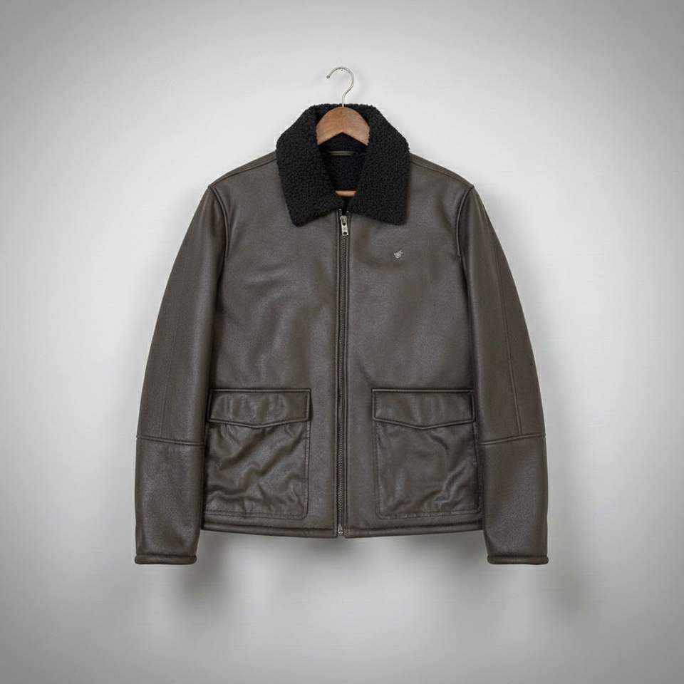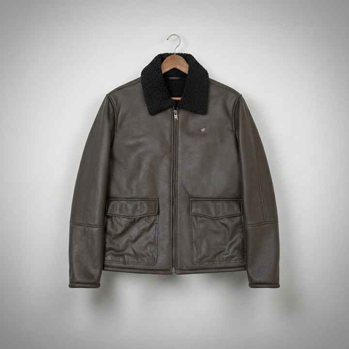 Veste en cuir de vache véritable pour homme avec col en fourrure, style aviateur d'hiver, fabricant OEM/ODM sur mesure