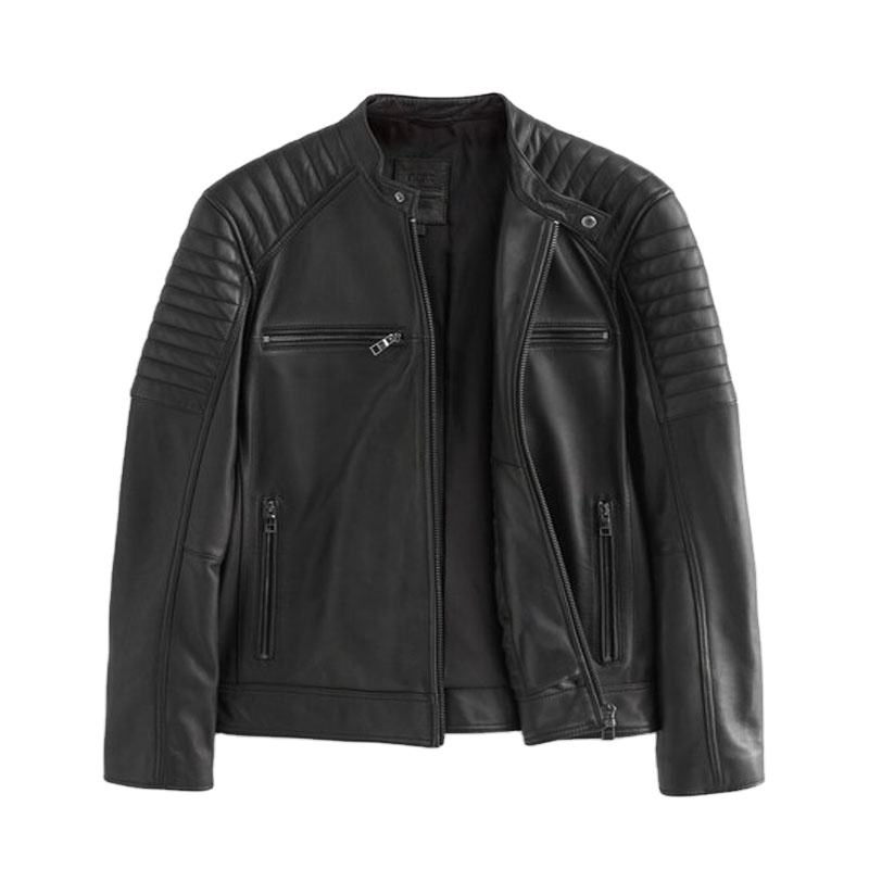 Veste de motard en cuir véritable pour homme avec épaulettes rembourrées, fermeture éclair de haute qualité pour vestes de moto