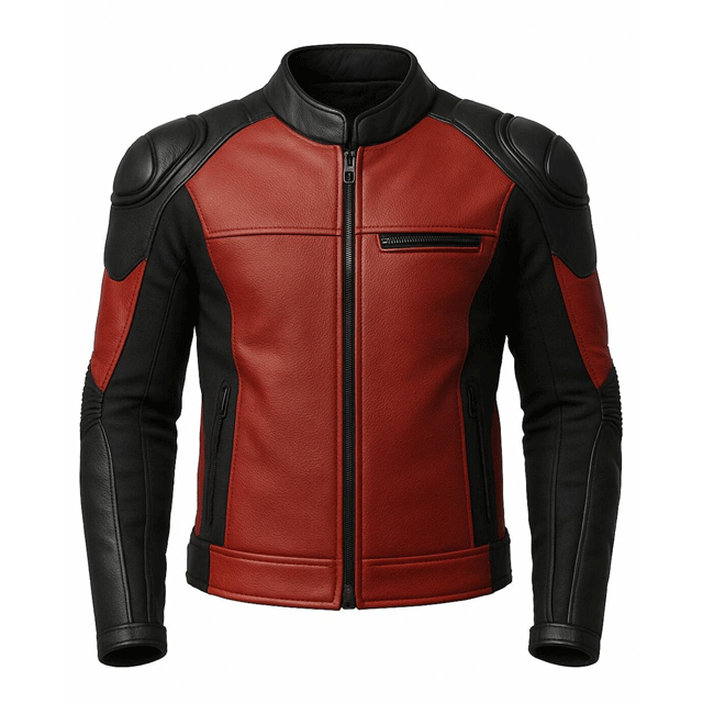 Veste d'équitation de moto en cuir véritable pour hommes Veste de moto en cuir à empiècements noirs et rouges pour course sur piste blindée CE Veste de moto en cuir pour hommes