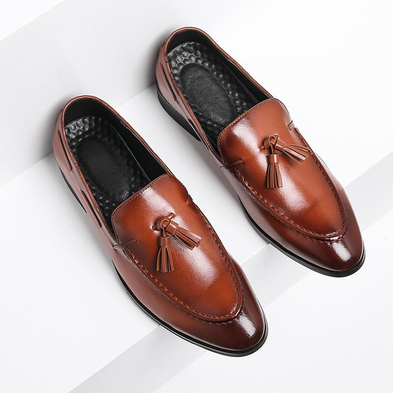 Men's Genuine Leather Shoes British Style Trendy Business Formal Lace-up Pointed Toe Derby Wedding Autumn Solid Pattern Comfort