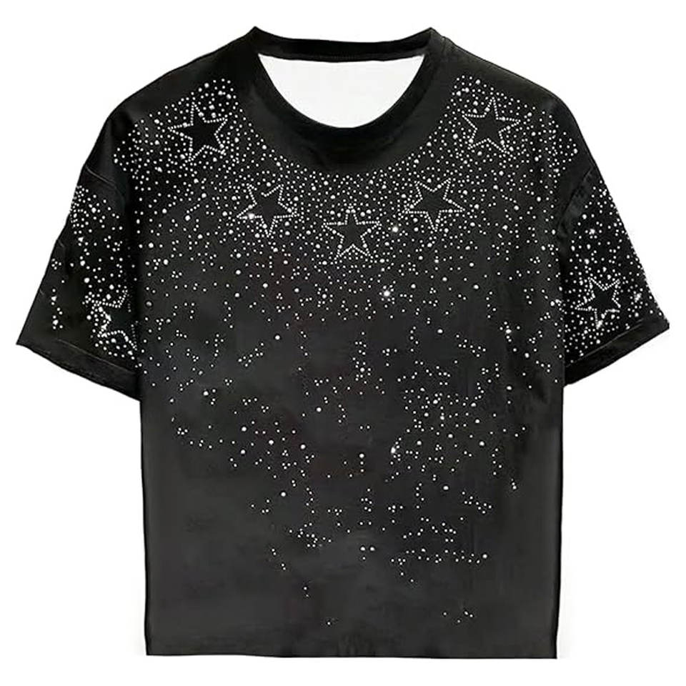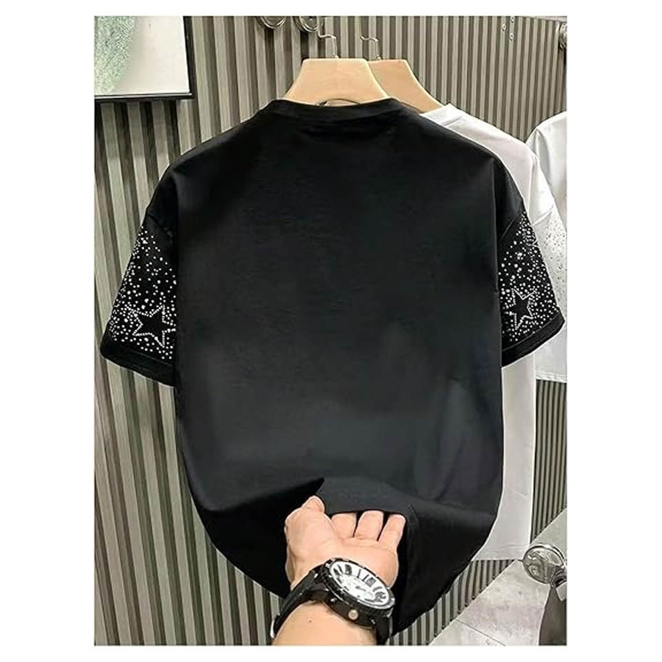 T-shirt à manches courtes pour hommes, imprimé étoile scintillante et strass, col rond, décontracté, graphique brillant, léger, confortable, streetwear