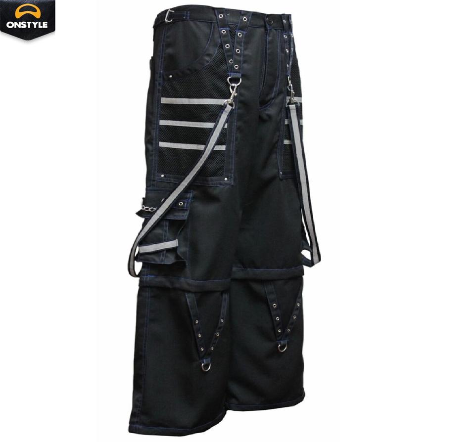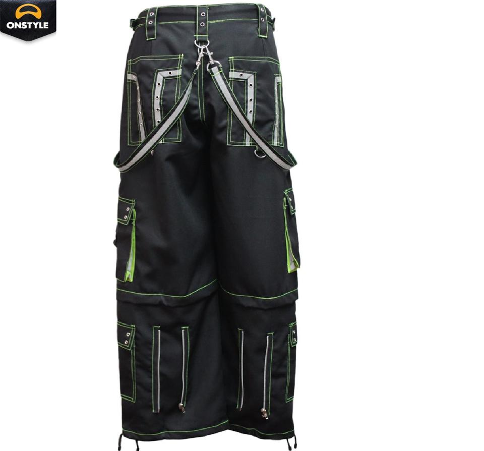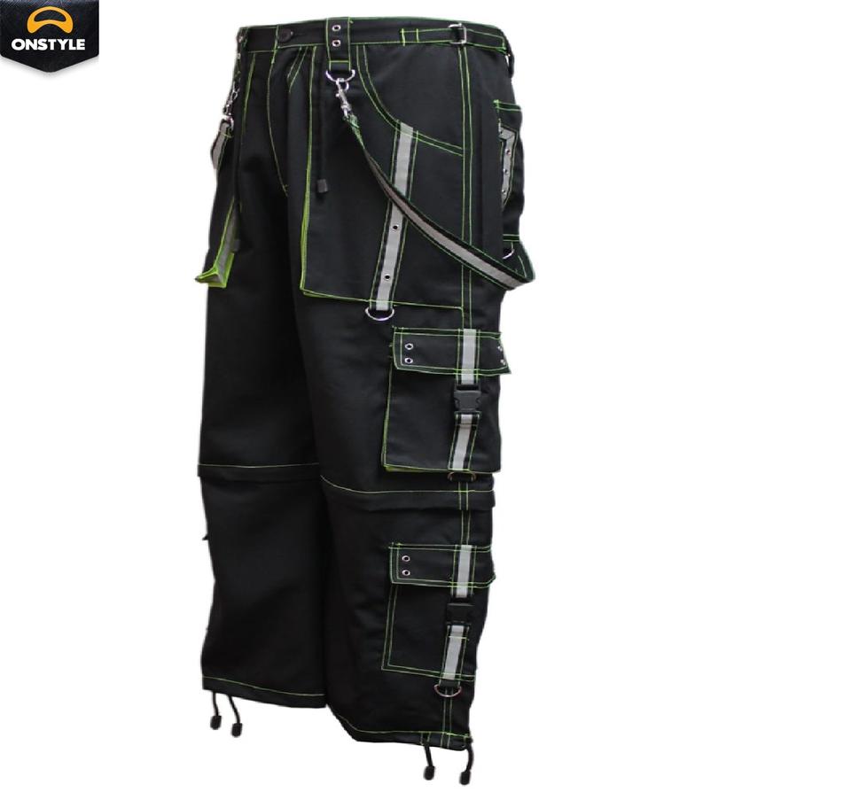 Men's Gothic 100% Cotton Plain Flared Pants Punk Rock Style High Waist Eyelet Cargo Belly Personalized Casual Streetwear