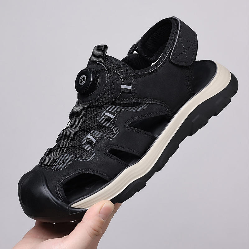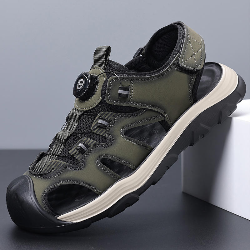 Sandales de randonnée pour hommes vertes à bout fermé avec boucle rotative à laçage rapide, empeigne en maille respirante, semelle antidérapante résistante à l'usure, confortables